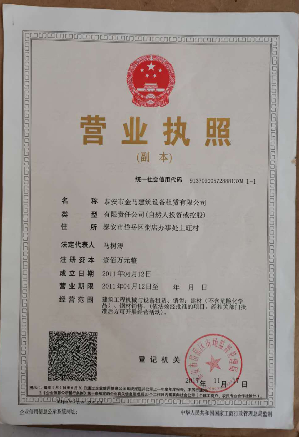 版權(quán)所有 ? 泰安市金馬建筑機(jī)械設(shè)備租賃有限公司 魯ICP備19049356號(hào)-1 魯公網(wǎng)安備 37091102000657號(hào)